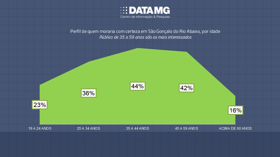 O dado chama atenção porque revela que quase metade dos entrevistados considera São Gonçalo do Rio Abaixo como uma alternativa residencial viável. Em termos de mercado imobiliário e planejamento urbano, trata-se de um percentual relevante.